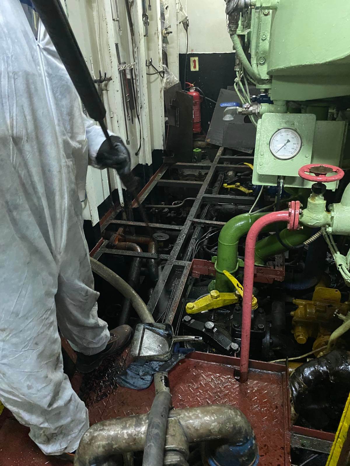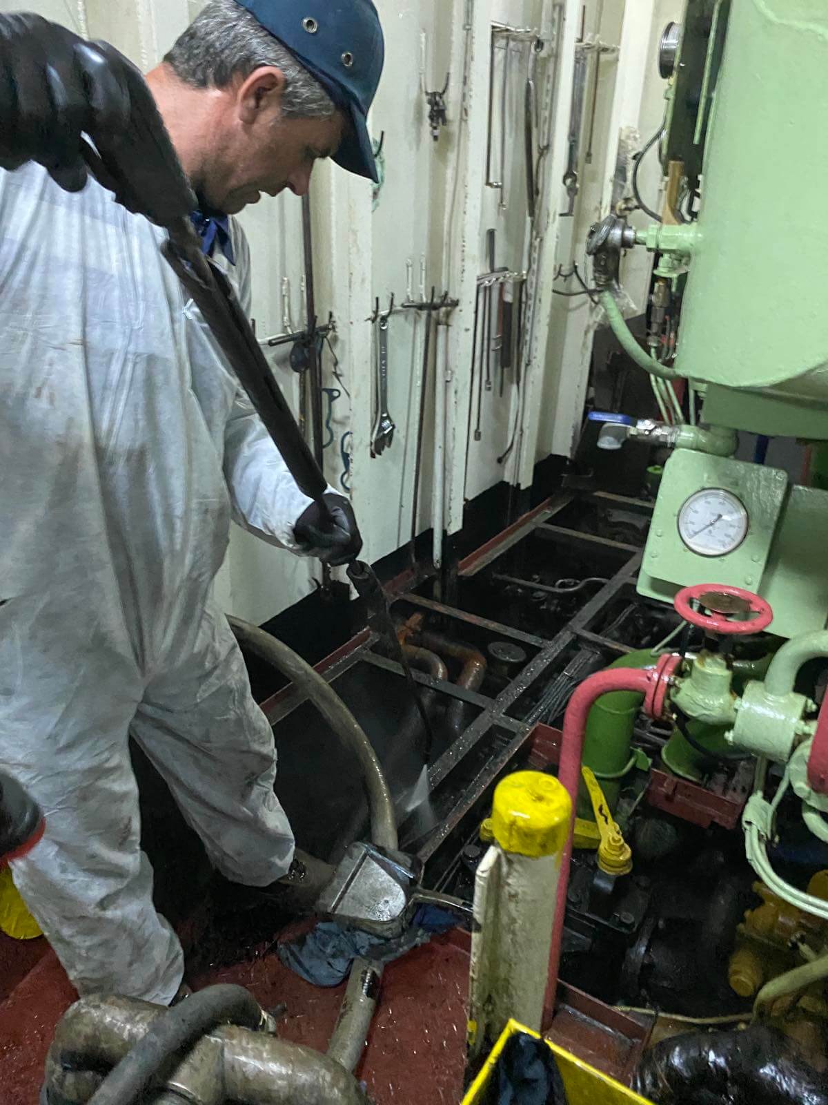 Engine room bilges cleaning - chemical washing - painting